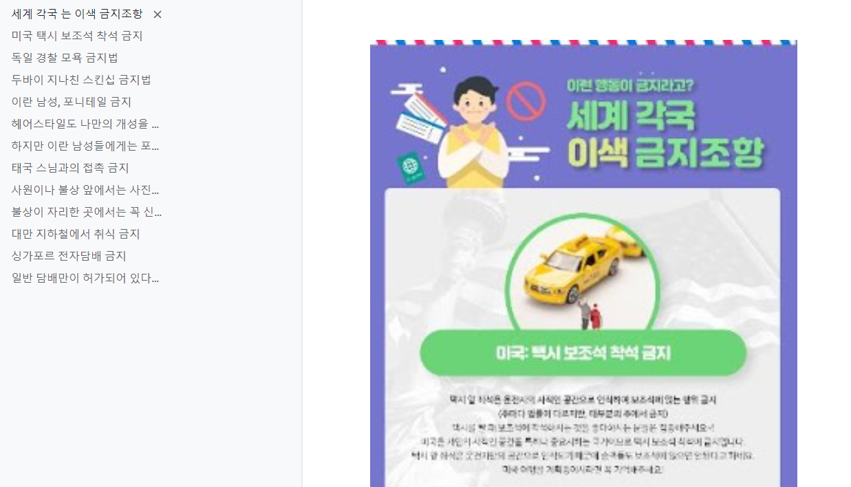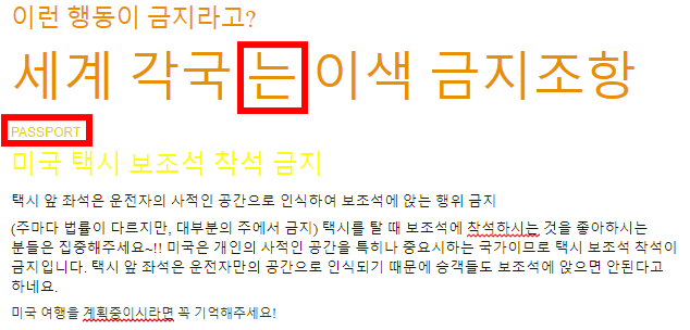 저 이미지에서 문자를 잘못 인식한 부분은 "세계 각국 는 이색 금지조항"의 [는] 뿐이네요.
